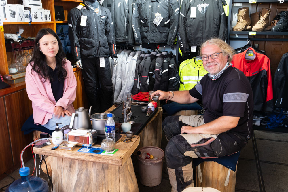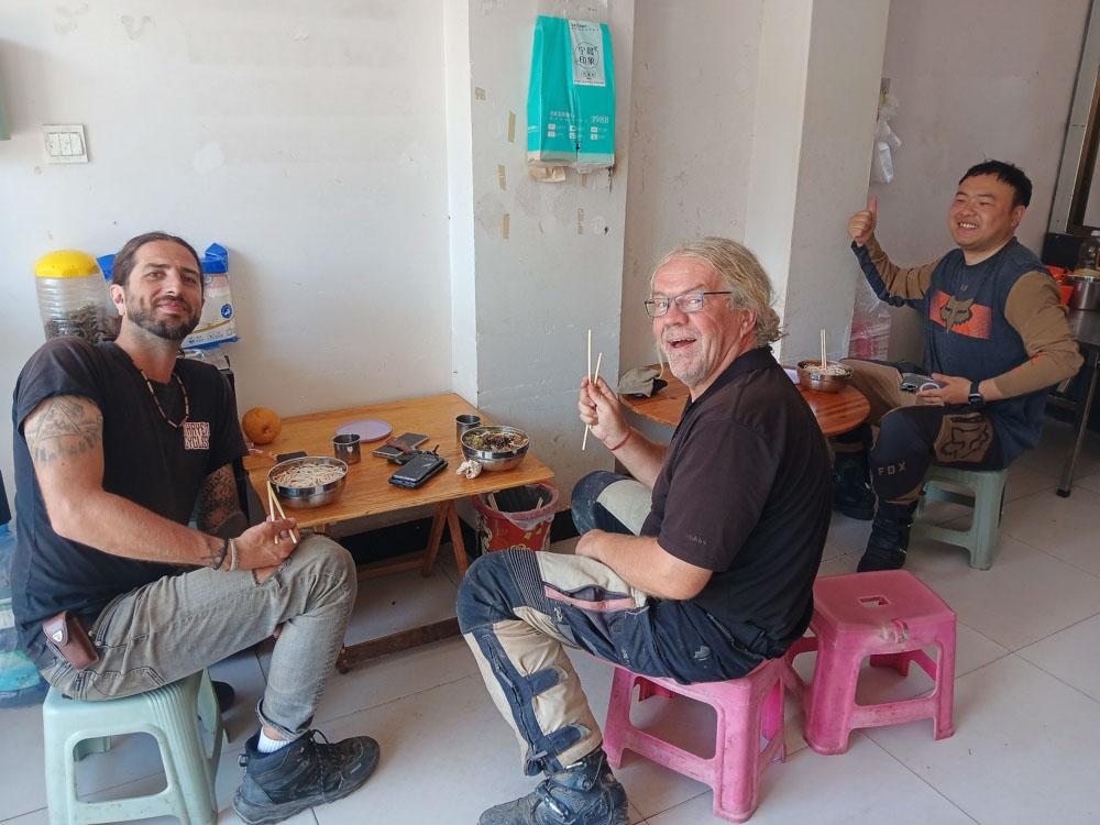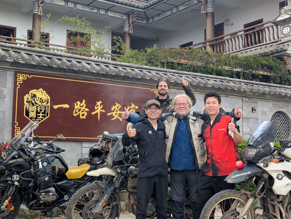 Wir können uns kaum retten vor Chinesen, die sich mit uns fotografieren lassen wollen. Oder mit unseren Motorrädern. Gefühlt drückt sich halb China die Nase an unseren deutschen Kennzeichen platt.