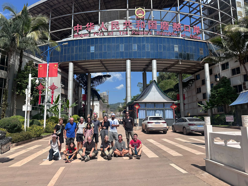 Morgens um sieben treffen wir unsere Reisegruppe an der Grenzstation auf der laotischen Seite. Die besteht neben dem englischen Motorradreisenden Chris und uns ausschließlich aus Fahrzeugen mit vier und sechs Rädern. Anders als mit einer chinesischen Agentur ist es nur schwer möglich, China mit dem eigenen Fahrzeug zu bereisen. Und im Fall von Tibet dürfte die Chance gar gleich null sein.