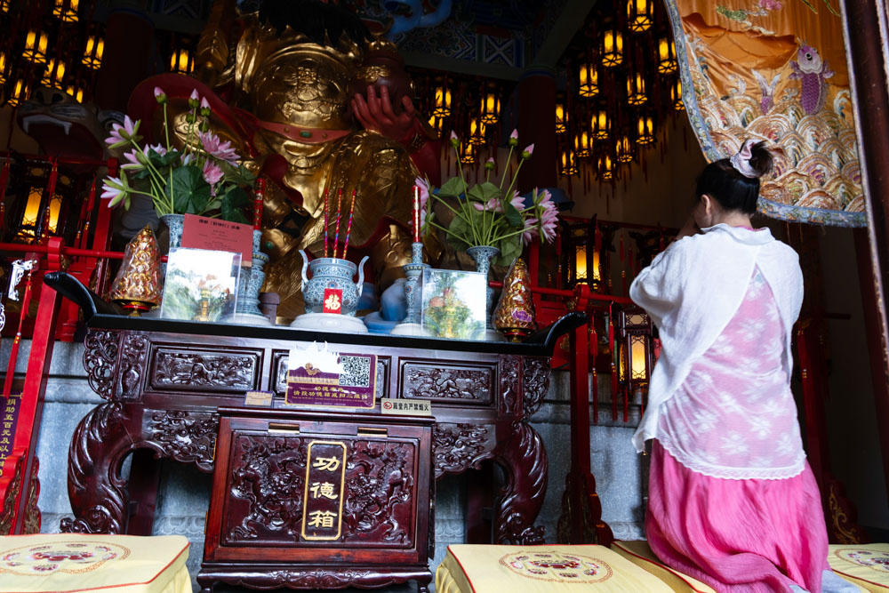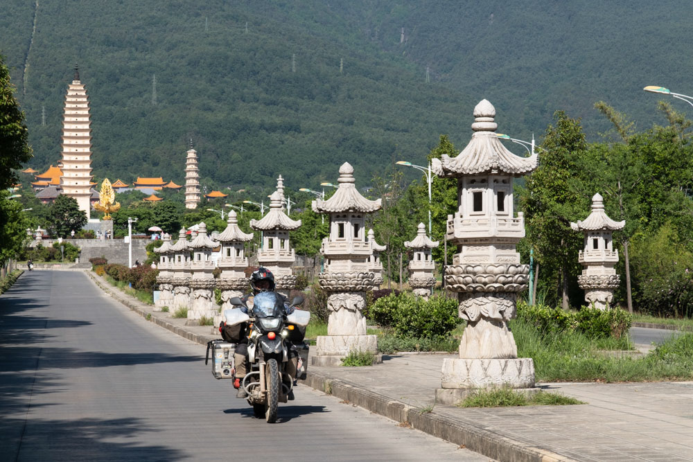 Die Chinesen sind äußerst freundlich und zuvorkommend zu uns. Wenn auch stets neugierig und manchmal etwas aufdringlich. Wir beziehen einen süßen kleinen Campingplatz am Rande von Alt-Dali und machen uns auf den Weg hinauf zu den drei Pagoden des Chongsheng-Tempels. Das riesige Areal überragt die 1200 Jahre alte, 70 Meter hohe mittlere Pagode. Es verströmt etwas Souveränes, Majestätisches, Ruhiges – fast eine Art von Magie – und wir realisieren langsam, dass wir im Reich der Mitte angekommen sind. Ehrfürchtig streifen wir durch die Anlage und atmen 3000 Jahre Geschichte.