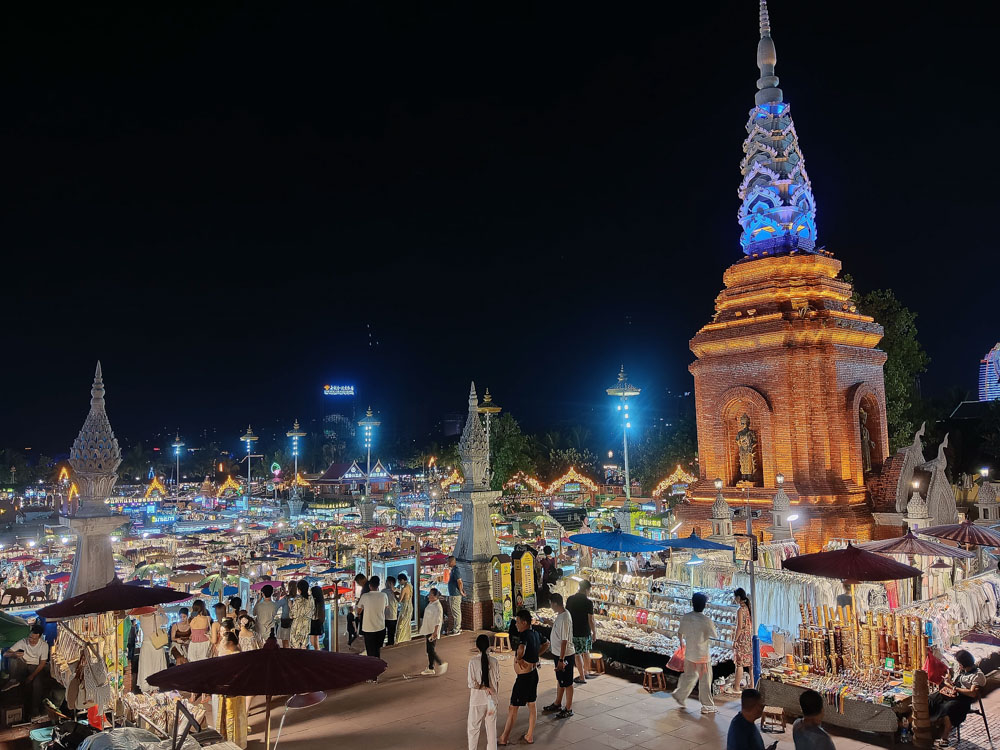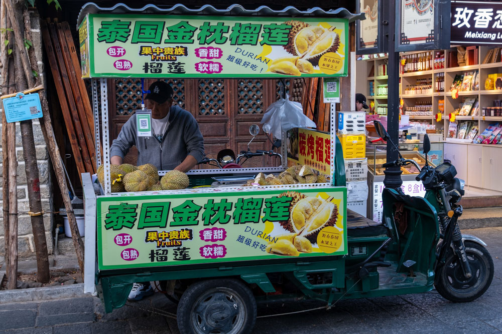 Obwohl wir gegen 5 Uhr aufgestanden sind und den ganzen Tag auf Achse waren, machen wir uns auf den Weg zu dem riesigen Nachtmarkt. Sauber und geordnet, fast schon steril – das genaue Gegenteil der laotischen Märkte. Von unserem Hotelzimmer sehen wir über die halbe Stadt hinweg. Hier gäbe es noch mehr zu erkunden, eine Situation, in der wir klassischerweise einen weiteren Tag dran hängen würden. Geht aber angesichts der Gruppentour nicht. So starten wir am nächsten Morgen mit Chris gen Dali in der benachbarten Provinz Yunnan, einer historischen Stadt, die uns stark in ihren Bann ziehen wird.