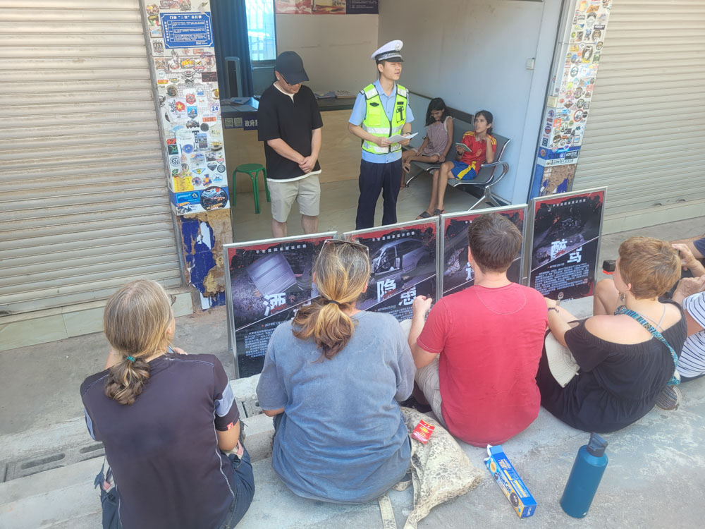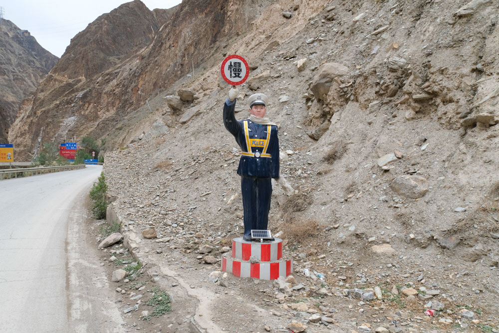 Nach einer ausführlichen Belehrung im Stil einer Schulklasse, wie man sich im chinesischen Straßenverkehr zu verhalten hat, dürfen wir schließlich unseres Weges fahren. Die Situation birgt eine irre Komik. Denn da versucht ein Provinzsheriff die Verkehrsregeln zu vermitteln – an Globetrotter, die bereits die Straßen auf allen Kontinenten unter den Rädern hatten.
