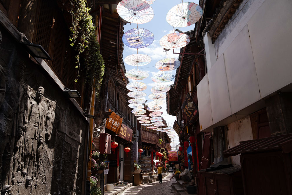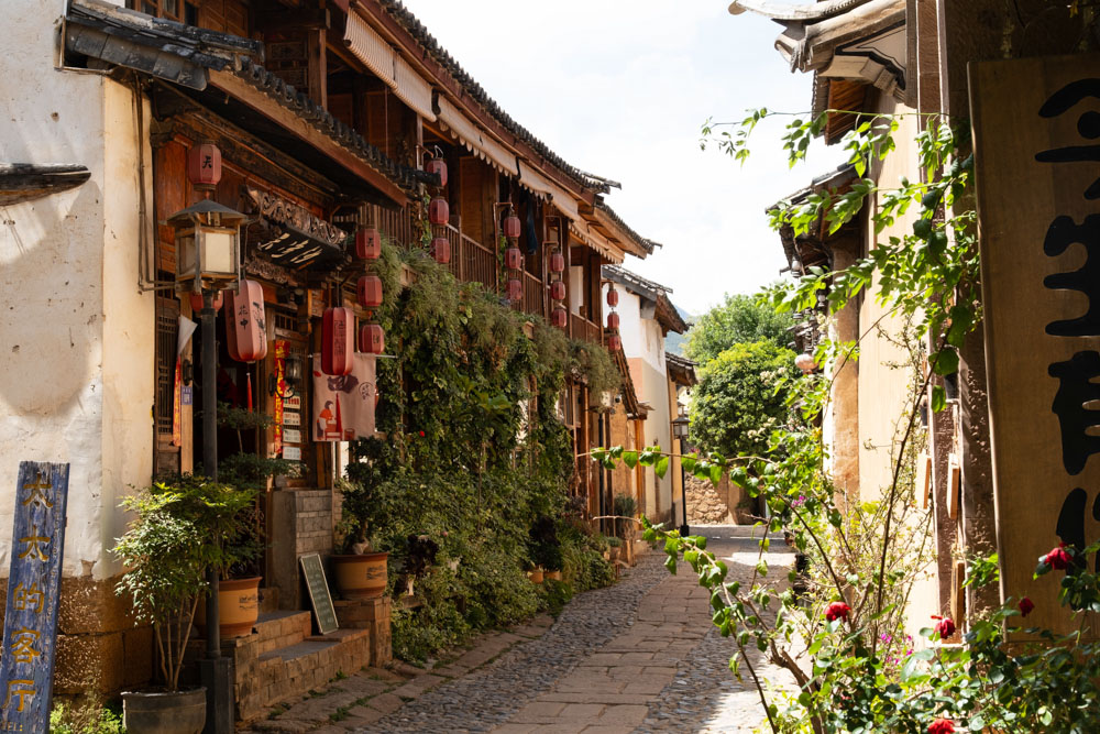 Tief beeindruckt von so viel Güte setzen wir den Trip fort. Wir entscheiden uns für einen Abstecher zu einem ganz besonderen Dorf. Shaxi stammt aus dem 7. Jahrhundert und war ein florierender Handelsplatz entlang der zwischen China und Burma beziehungsweise Indien verlaufenden Alten Tee-Pferdestraße. Der einstige Reichtum lässt sich angesichts der pompösen Gebäude, des Theaters und des buddhistischen Tempels heute noch erahnen. Die Pferdekaravanen machten hier Station oder schlugen Tee und Salz um.