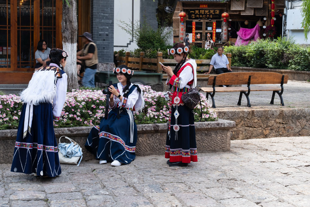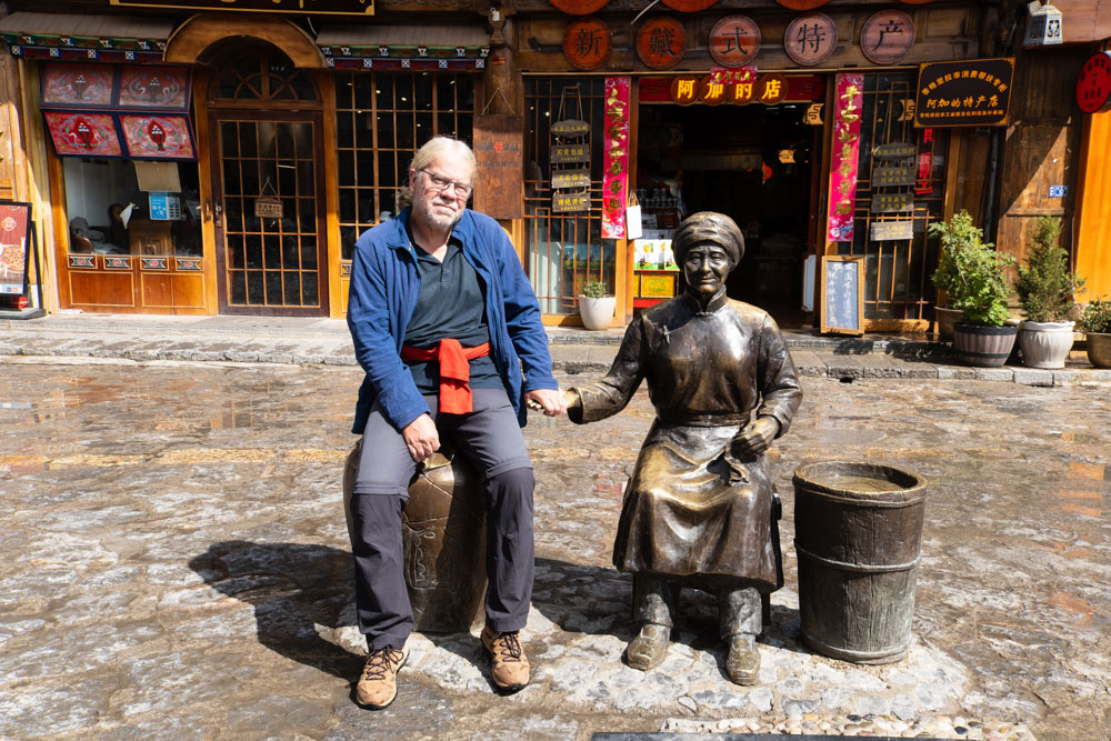 Nach einem kleinen Imbiss machen wir uns auf den Weg nach Lijiang, wo unser Trupp auf einem Campingplatz bereits auf uns wartet. Es ist kalt und regnerisch. Wir befinden uns zwar noch in der Provinz Yunnan, doch der Höhenmesser zeigt bereits 2400 Meter. Wir sind auf dem Weg in den Himalaya. Um uns an die Höhe zu gewöhnen, sind hier drei Nächte eingeplant. Auch Lijiang lag an der Tee-Pferderoute, doch im Gegensatz zu Shaxi hat man hier die Altstadt zu einem sterilen Vorzeigeort für Touristen herausgeputzt, bei dem seine historischen Wurzeln nur selten aufblitzen. Die Läden wiederholen sich: Schmuck, Souvenirs, Bubble Tea, etc.