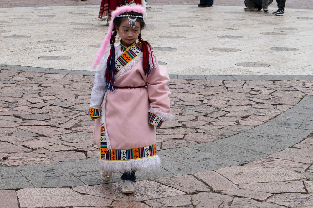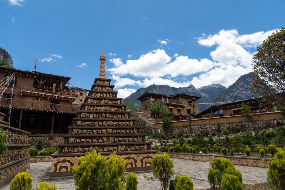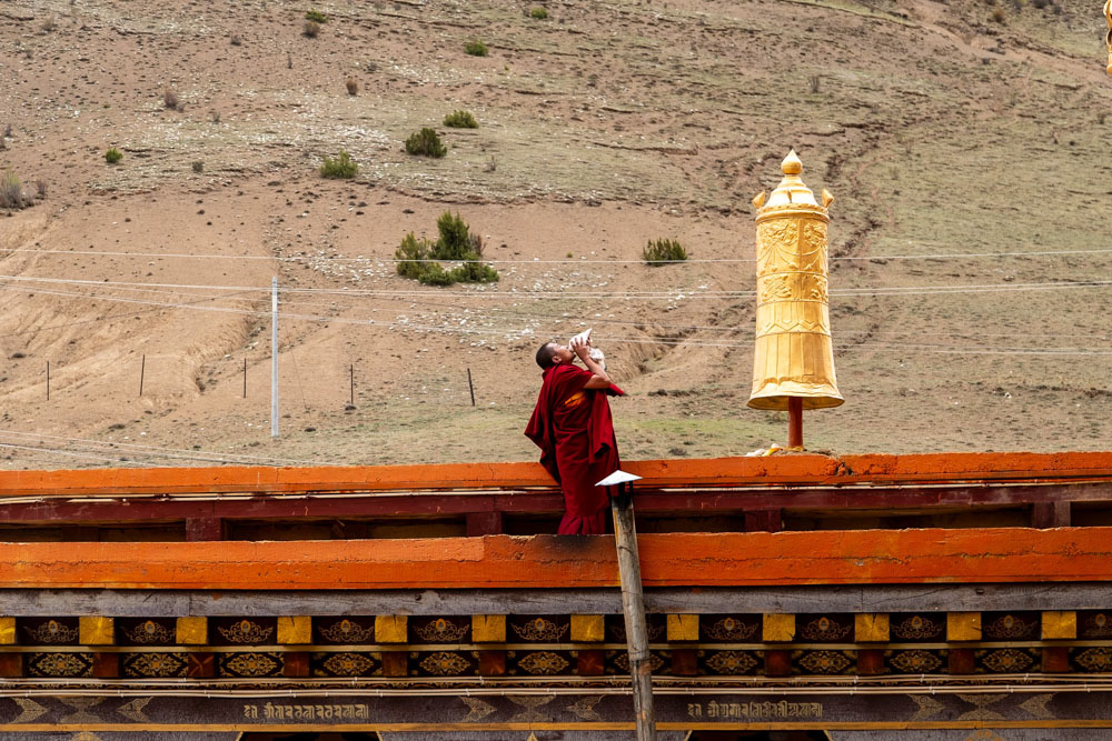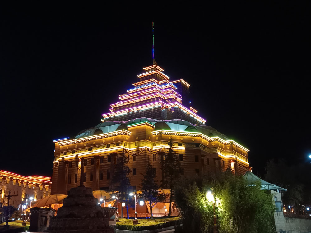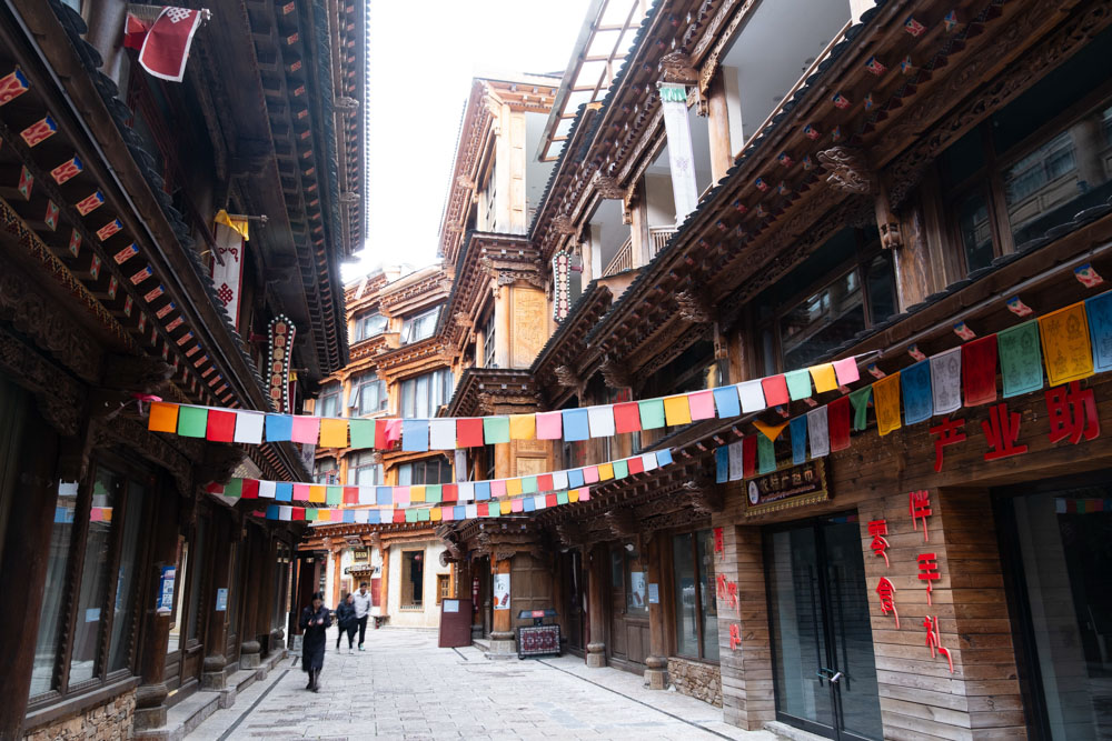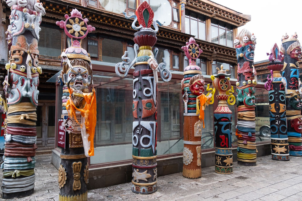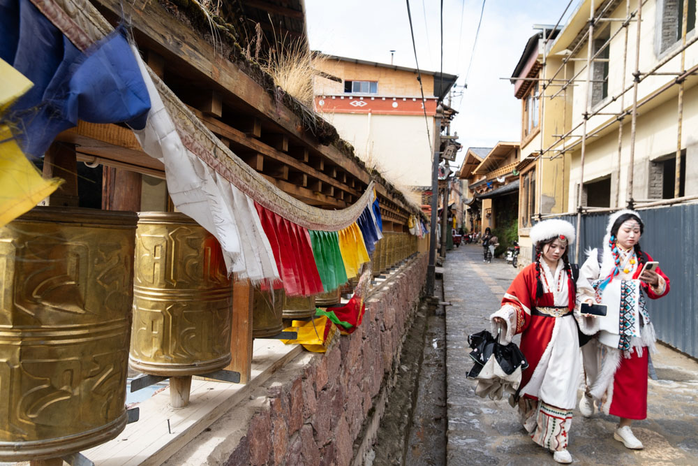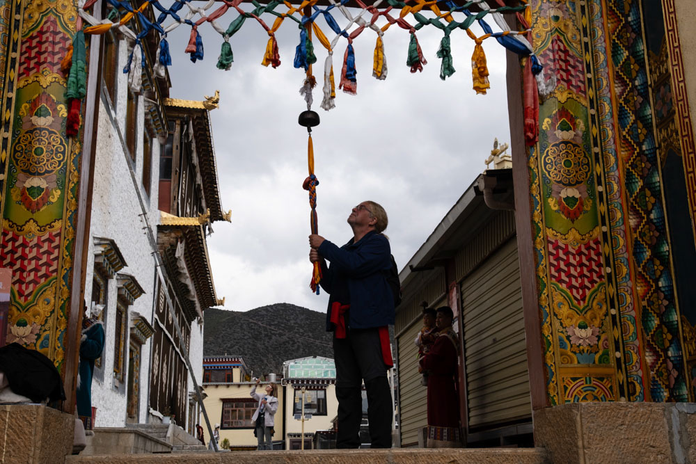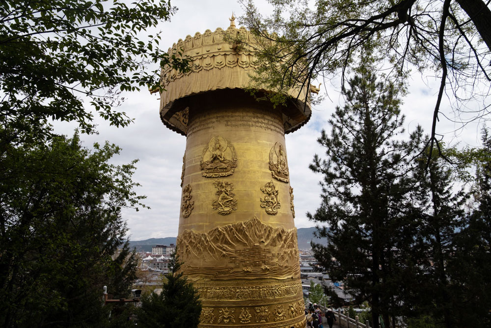 Hier leben auch zu einem großen Teil Tibeter, die ihre Kultur und ihre Kulinarik darreichen. Wir besuchen ein tibetisches Restaurant und probieren Momos, mit Yak-Fleisch gefüllte Teigtaschen, und tibetischen Tee. Die Stadt wird vom weithin sichtbaren Guishan-Tempel und der mit 21 Metern größten Gebetsmühle der Welt überragt. Rund 20 Personen können an dem epischen Drehturm ziehen.