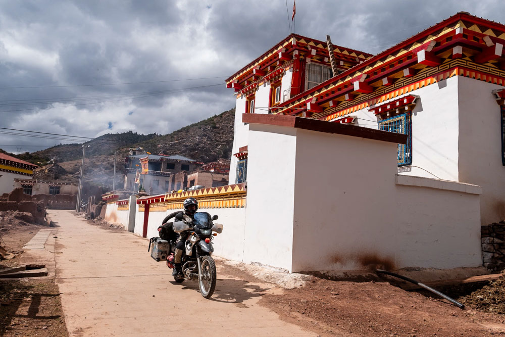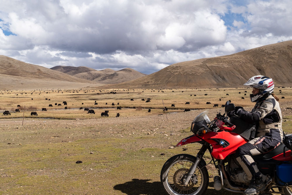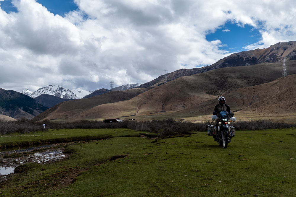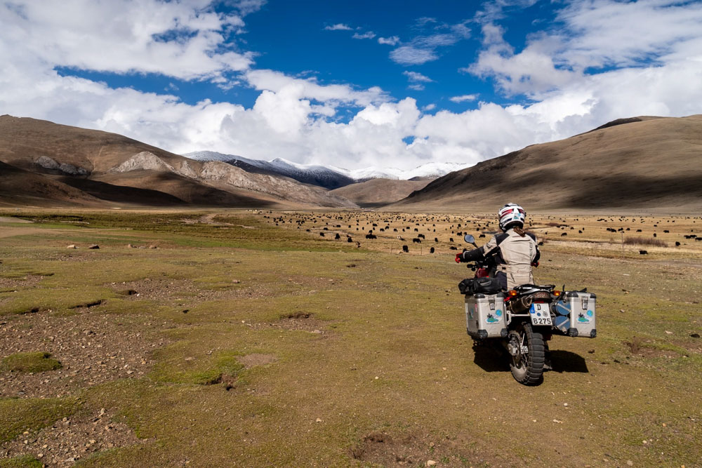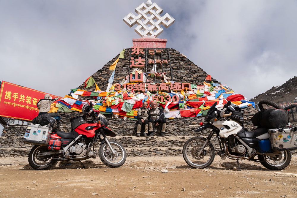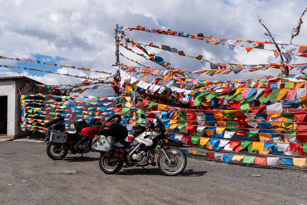 Die Reisegruppe ist eingetroffen, und wir setzen unseren Weg gen Tibet fort. Immer weiter schrauben wir uns in die Höhe, immer wieder queren wir Pässe mit spektakulären Ausblicken, allenthalben überholen wir eines der uns begleitenden Wohnmobile. Die meisten davon haben eminent Probleme mit der Höhe, die schon bald konstant jenseits der 4000-Meter-Marke liegt. Auch wir spüren einen deutlichen Leistungsverlust durch die dünne Luft. Dennoch laufen die BMWs noch beeindruckend gut unter den gegebenen Bedingungen.