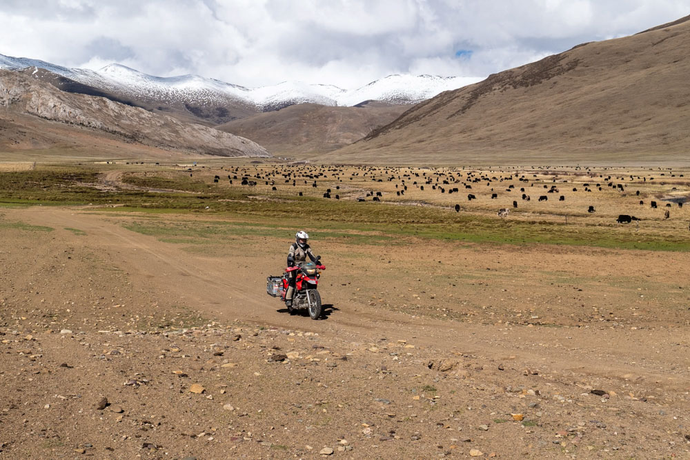 Auf dem Rest der Strecke bis in die Hauptstadt meint es Petrus nicht immer gut. Doch immer wieder fahren wir zwischen Sechstausendern hindurch und staunen über die spektakuläre Landschaft. Eine letzte Passquerung, auf der Graupel einsetzt und uns zu schaffen macht. Wir frieren wie die Schneider, doch letztlich halten wir durch bis zur Abfahrt hinunter in die Hauptstadt Lhasa. Jene ehrwürdige Stadt, Sitz des Dalai Lama, kulturelles und spirituelles Zentrum des tibetischen Volks, Schauplatz von Aufständen gegen die chinesischen Aggressoren – und eines der Traumziele dieses Planeten. Und eine Stadt, die reichlich Eindrücke bei uns hinterlassen wird. Positive und negative. Mehr dazu im nächsten Blog.