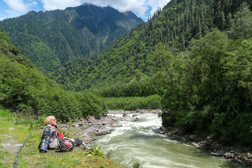 Schließlich erreichen wir den Übernachtungsort, den Agenturboss Edward auserkoren hat. Wir sind bereits gegen 14 Uhr vor Ort, idyllisch gelegen in einem tiefen Seitental auf lauschigen Wiesen und mit einem Bach durch die Mitte. Schlichtweg ein Paradies. Da der Rest der Gruppe noch mindestens drei Stunden auf sich warten lässt, starten wir auf eigene Faust tiefer hinein in das Tal. Wir passieren kleine Dörfer, zum Teil aus Lehmhütten, landwirtschaftlich geprägt.